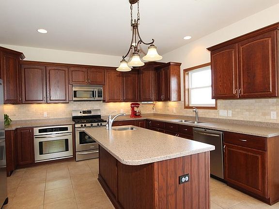 Custom built 4BR/4.5BA home on a cul-de-sac, 3 car tandem GA on walk-out lot. Open concept living rm. w/fireplace; kitchen has sliding doors to deck, beautiful/ample cabinetry, island, super-sized refrigerator and butler pantry to formal DR. Large master ste w/whirlpool tub, Jack/Jill bedrooms and guest suite has private BA. Finished walkout LL complete w/Rec Rm. great for gaming & TV room, full bath, plenty of storage. Main level laundry. Enjoy amazing views of the lake and a great spot to watch fireworks