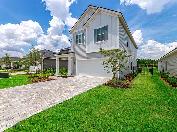 Welcome to this rare find of a floorplan in Silverleaf! The most coveted of them all... the VILANO by Dreamfinders. The builder does not even have any to offer because they are all sold out of this one! Plus this one has the best curb appeal with it's board and batten accents, paved driveway and double door entryway. Upon entry you will immediately be greeted with natural light as this property faces east! With one bedroom and bathroom on the first floor in addition to the spacious living room and gourmet kitchen this is the perfect layout for privacy for guests, teens or mother in laws! Upstairs you find the luxurious owners suite complete with double vanities, a large glass enclosed shower and a huge walk in closet with a custom system. Upstairs you will also find 2 more bedrooms, a full hall bathroom and an oversized loft perfect for whatever flex space you need! The backyard has already been fenced in for you and the garage floor has also been professionally epoxied!