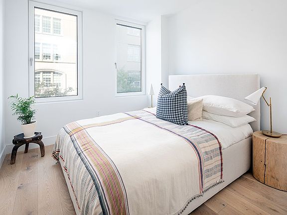Spanning 748 square feet, this brand-new residence invites you to discover Madera wide-plank white oak floors and tall ceilings dotted with recessed ultra-thin LED lighting throughout. Built in accordance with Passive House design principles, the home features triple-pane windows and an individual ERV unit for superior air quality.