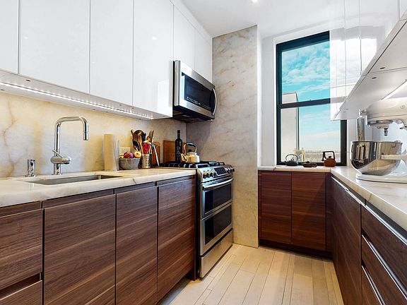 **All Showings and Open Houses are By Appointment Only** Please allow 24-48 hours for scheduling. Welcome home to this stunning TOP FLOOR 1 bedroom oasis, just steps away from Cabrini Woods and Fort Tryon Park, in picturesque Hudson Heights. With western facing water views throughout your new home, and a top of the line renovation, you will not be disappointed. Designed with high end finishes throughout, this custom kitchen is everything you have been looking for. The counters and backsplash flow through the kitchen comprised of Cristallo Quartzite and the two tone cabinetry has a clean glossy white finish on top with warm wood finish below. The kitchen appliances include a paneled Bosch dishwasher, which maintains a sleek cabinet flow, along with the Samsung Flex Duo range with double oven and microwave hood to suit all of your cooking and baking needs. Completing the look you have a Blanco deep sink, with Grohe faucet, and a large Samsung fridge. The bathroom is equally decked out with floor to ceiling tile Duravit soaking tub, Toto toilet, and Robern medicine cabinet. Peacefully quiet and situated in the heart of Hudson Heights just steps from the mighty Hudson River, this pet -friendly co-op offers an inviting courtyard for residents to enjoy, a live-in super, private storage available, a bike room and laundry room and a Part-Time Doorman. The neighborhood has an abundance of amenities: nearby A/1 trains (25 min to Midtown) & M4/M98 buses, easy access to tennis courts & cycling trails along the Hudson, quality cafes & restaurants, a Starbucks, plus great spots to shop, work out or pamper yourself with a massage. Hudson Heights is a picturesque Manhattan escape, with its richly tree-lined streets, the Cloisters and tranquil views of the Palisades, the river & George Washington Bridge. Flip Tax Split 1% to Buyer 1% to Seller. Assessment $86/month through February 2023.
