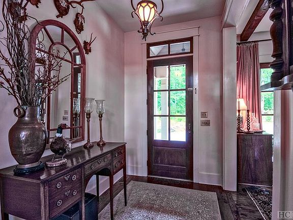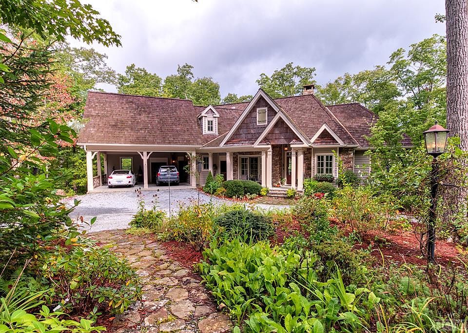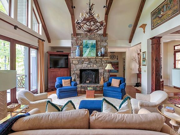 Beautiful like-new home has easy driveway, gentle yard and fantastic long range mountain views. An entertainer's dream home with well appointed kitchen and nice pantry, is central to large screened porch with fireplace, breakfast nook and dining room. Master suite on main opens to deck and has wonderful closets and bath. Office or additional guest room on main, as well as full guest suite on opposite end of home. Upstairs has interior entry that can be separated from the main level and has two very quiet, spacious guest suites with coffee/den common area. Lower level offers art studio/golf cart storage, plus. This home is very bright and cheerful with lots of natural light from large windows. On the "original" side of High Hampton, just a golf cart ride to all the fun.