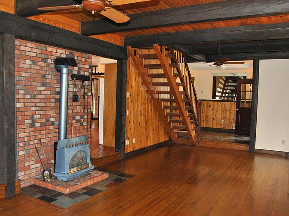 Charming 4 bdrms, 2 bths, Dutch Colonial that is set far back from the road on a treed parcel of land that is just shy of an acre. Craftsmanship abounds in this builder's home with its beautiful oak floors, pine doors and decorative trim work throughout. From the inviting warmth of the Great Room with wood and beamed ceiling and gas stove, to the practical feature of a *Russian Fireplace in the center of the living space, you will be impressed by this solidly built home. The large country kitchen and separate breakfast room overlook the park-like setting of the backyard. Boating in immediate area and nearby beaches. This home is an idyllic environment for raising a family.