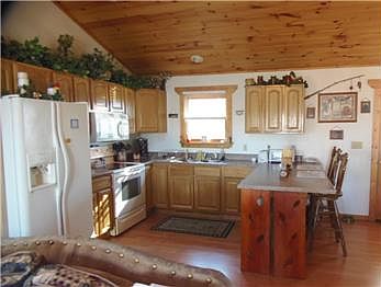 RANCH STYLE HOME WITH MOUNTAIN VIEWS ....This 2/2 home has an open floor plan with large kitchen with breakfast bar,stone fireplace, vaulted tongue/groove ceilings,master suite with private bathroom,full walk-out basement that can be finished with your personal touch,2 covered decks to enjoy the views and entertain on,circular driveway for easy access,great garden area.Furnishings are negotiable...Close To Town