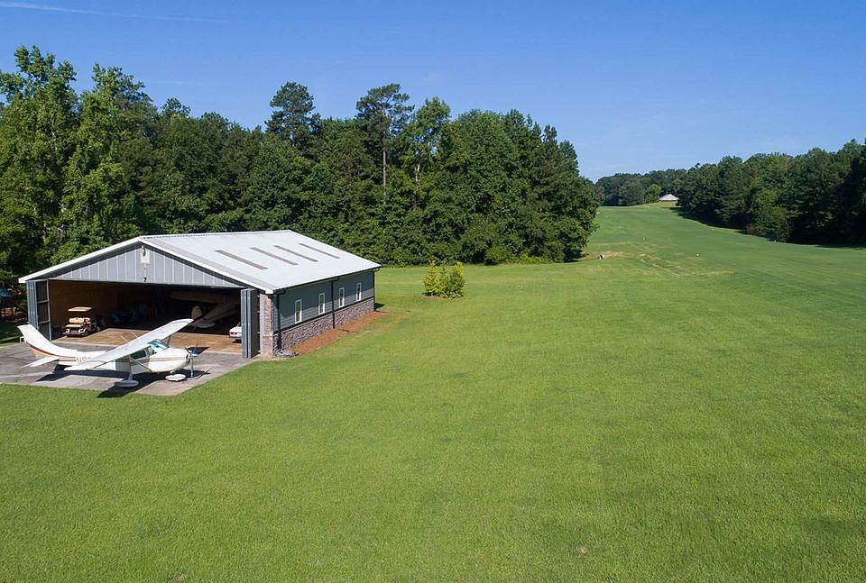 Lyons Landing Fly In Community - Atlantas most appealing airpark community. 6.55 beautiful acres fronting airstrip with 50 x 64 custom aircraft hangar complete with kitchen and full bath. Very attractive with stone and hardi-plank exterior. The acreage is gently rolling with a combination of open and wooded land. A perfect setting to enjoy the country life with the convenience of a private airstrip to connect you with the world. Amenities include a lighted 3000 foot runway, community clubhouse, pool, tennis courts, walking trails, common areas, and two lakes for quiet recreation and fishing.