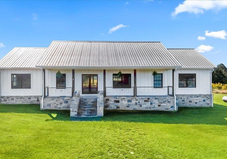 Looking for your own mini farm and ready-to-go homestead? This one-level modern farmhouse has all the bells and whistles. Nestled on beautiful land perfect for animals, it also includes a high-tunnel hoop house so you can grow year-round. As you drive up the driveway, you’ll immediately notice the gorgeous stonework and inviting covered front porch with double doors welcoming you home. Step inside to an open-concept kitchen, living, and dining area centered around a stunning stone fireplace—a true showstopper. The kitchen features quartz countertops, stainless steel appliances, and custom cabinetry, complete with a huge walk-in pantry. The spacious main suite includes a tile shower, soaking tub, walk-in closet, and even doubles as a safe room. There are two additional guest bedrooms, a dedicated office/study, and a bonus room that can serve as a playroom, media room, or hobby space. Outdoors, you’ll find the perfect setup for grilling and entertaining guests, surrounded by open skies.