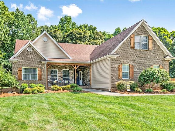 Location, location, location! This exceptional ranch-style home features main level living, plus an upstairs bonus room, ideal for a home office, gym, playroom, etc. Located in popular Covington Creek in Advance, this well-cared-for home is located a short walk to Ellis Middle School, just around the corner to Shady Grove Elementary School, and less than 10 minutes to I-40 in Bermuda Run. With rich hardwood floors, a cozy gas fireplace, vaulted ceilings in the living room, updated countertops and appliances in the kitchen, and nice bathrooms, you won't have to do a thing before you move in. With an open floor plan, including a separate dining area as well as a breakfast nook, the flow of this home is ideal for entertaining and welcoming guests. Enjoy summer nights outside with a glass of wine on the screened porch, enjoying the shade on the composite deck under the pergola, or grilling on the concrete patio. This fall, you'll love warming up by the fire pit. Come see it today!