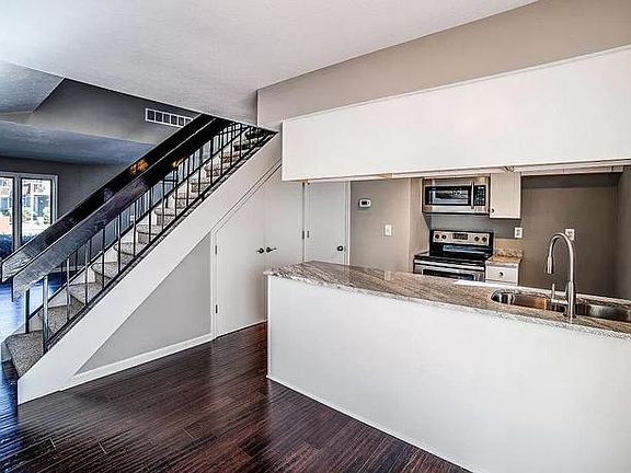 This modern, spacious two (2) bedroom 1.5 bath condo is located in the Crescent Springs neighborhood, within walking distance to Frankfort Ave. Walk to dinner at locally owned establishments such as El Mundo, Con Huevos, Comfy Cow or grab a coffee down the street at Heine Brothers. This condo has been completely renovated. Amenities include rich wide plank distressed dark wood floors, modern sleek appliances and vaulted ceilings. Two bedrooms - master is carpeted and includes a fireplace. Second bedroom is loft-style with large walk-in closet. Condo also has a back deck and large windows Modern walk-in shower in bathroom. Washer and dryer also included within condo. Access to condo pool and large open green space are directly across from building. **Refrigerator not pictured, but has since been installed and does come with unit. Available February 1, 2022. Call 502-889-six oh four two. $1,250/month - one year lease, water included. No animals over 20 pounds. $50 fee per month for pets. No smoking.