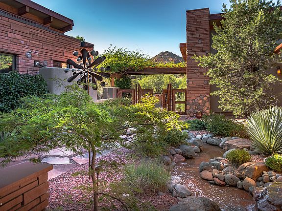 Seeking inspired design, luxury, privacy, & a lovely setting with intimate red rock views, but not the upkeep of a massive house? Come experience this exquisite gem set on 2.45 verdant acres at gated Cross Creek Ranch, just 10 minutes from town. Crafted by Eric Brandt, one of Sedona's most innovative architects, to harmonize with nature, this Southwestern Contemporary is stunning in its execution, yet supremely comfortable & embracing. Thanks to a creative floor plan & extensive use of delightful open air space, the home lives much larger than its square footage might suggest. Entering the gated courtyard, be greeted by a playful waterfall & stream & an inviting outdoor ''living room.'' Inside & out you'll find extraordinary craftsmanshp. See SUPPLEMENT. View our 3-D self-tour in PHOTOS.