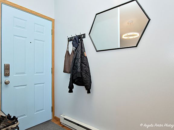 Step into this beautifully updated top-floor condo at 350 Cunat, Unit 3C! This charming home features hardwood floors throughout the main living area, while the vinyl plank flooring in the bedrooms adds both style and durability. The vaulted ceilings create an open and airy feel, enhancing the spaciousness of the home. Enjoy new light fixtures throughout, along with newer appliances and an in-unit washer and dryer for added convenience. Step out onto the private balcony and take in the beautiful view-a perfect place to unwind. Don't miss this incredible opportunity-schedule your showing today!