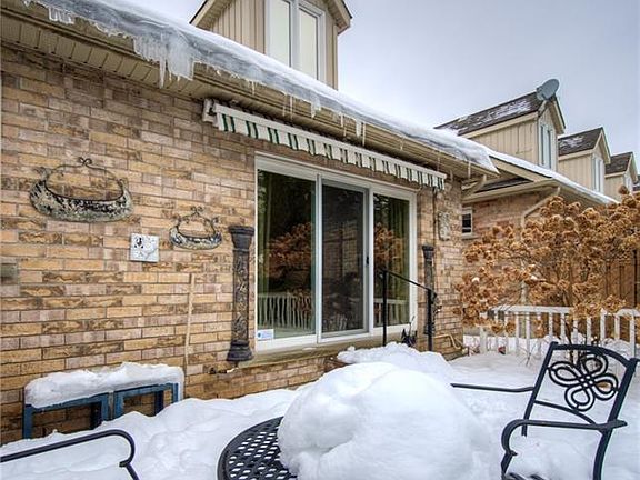 Fantastic large condo with low condo fees located across from Conestoga College. This sought after Mill Club complex is within walking distance to Doon Valley Golf Club and there is access from The Mill Club to Grand River / Walter Bean walking trails. This stone and brick semi detached unit is beautifully landscaped with a river rock front yard and the privacy deck off the back patio doors with an electric awning has views of massive tall pine trees. Walking in there is impressive vaulted ceilings, a large loft with a remote control lighted ceiling fan, hardwood flooring, granite counter tops, a $14,000 step-in air jet tub, California window coverings, remote control dormer window blinds, reflective window tinting on the kitchen/dining/living/master windows, safety bars from the master to ensuite, paneled glass French doors entry to the main floor den / bedroom, very high end carpeting in the finished basement, 4 bathrooms, +++. This layout lends itself to the potential of having 2 master bedroom suites because the loft has a large open space, an office which can be used as a walk-in closet and an extra 3 piece ensuite. The finished basement has very high end carpeting in the large open recreation room, another 3 piece bathroom, a large laundry room, a huge storage area and a cold cellar which has 80 clay wine bottle holders that the seller will leave. The main floor laundry room has been converted to a walk-in kitchen pantry and all the plumbing is still there behind the drywall to easily convert it back to a main floor second laundry. Anybody viewing this home will definitely be impressed with the abundance of living space, convenience to Hwy 401 / Homerwatson Blvd, short walks to golfing & trails and the beautiful club house which host many social events. Also note the owners are downsizing and some of their high-quality furnishings may be negotiable to an interested Buyer. Maintenance free living at its best!