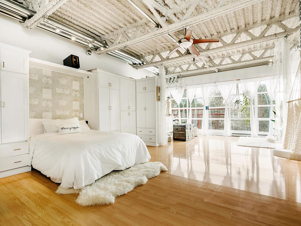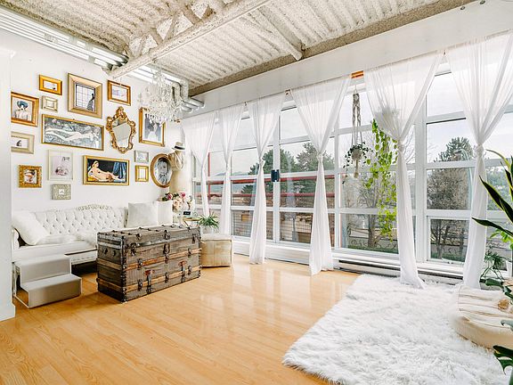 A romantically whimsical open concept live/work studio at the popular steel & concrete, Mainspace loft building. A true artists' style home in vibrant Mount Pleasant community. This renovated home boasts 10ft exposed ceilings, floor to ceiling north facing windows that allow for plenty of natural light, capturing mtn & city views. Updates incl. laminate flooring throughout, custom solid Oak Murphy-bed & armoire cabinetry that divides & organizes the space elegantly offering an abundance of storage. Fully updated kitchen ft. Kohler sink, Thermador induction range & S/S oven, RETRO Northstar factory-installed BrewMaster draft system, so you can sit back & enjoy your favourite beer or cider, on tap! Amenities include rooftop deck & large event space for occupiers. Rentals & pets OK! 1 Parking