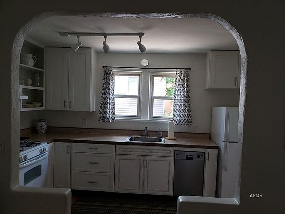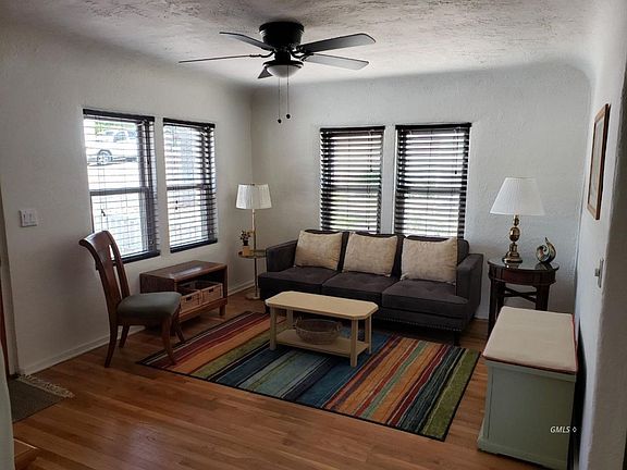 Santa Fe style home. Hardwood floors throughout most of the home. All the character with coffer ceilings and arches in the main room. 3 bedrooms and 1 bath. Will have new paint throughout. Gas range and fridge included, remodeled kitchen with granite counter, remodeled bath. Floors and exterior to be refinished/repainted. Large laundry room with included washer/dryer. 1 car garage and nice sized workshop/art studio. Chicken coop in backyard. Raised vegetable garden. Roses in front, fruit trees in backyard. Upgraded electric. New pictures coming soon.