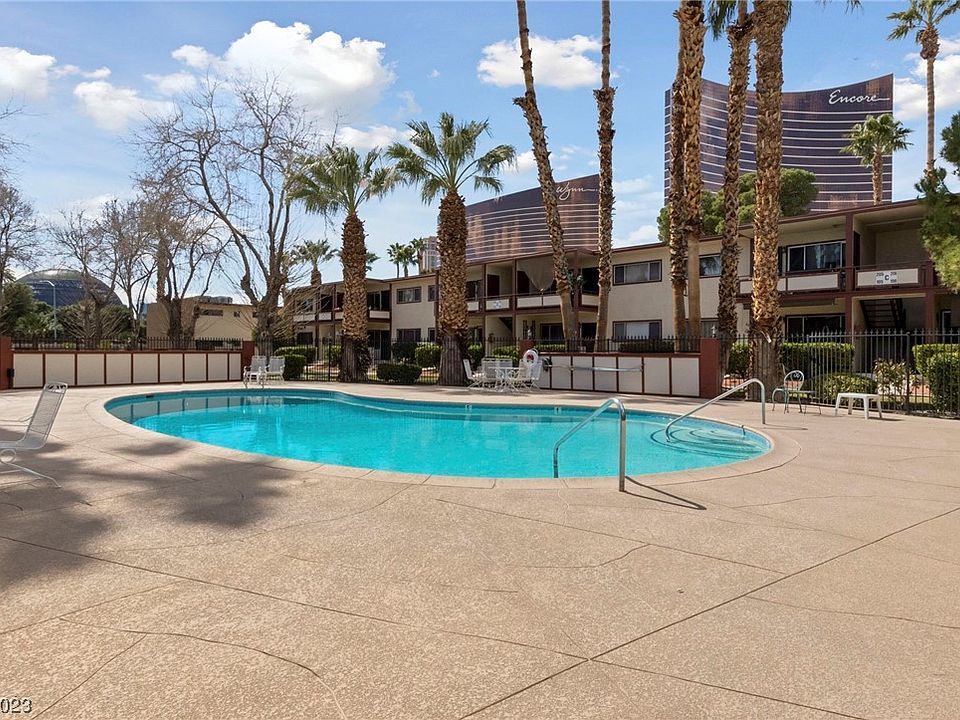 Remodeled, gated, all new appliances. Ground floor. Strip view. Walk to Strip and Convention Center. Water, cable and trash included. Covered parking .Washer. dryer, dish washer, stove, micro wave, oven. Water. gas and cable included