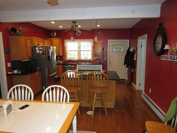 MOVE IN to this Beautiful 4 bedroom 2 bath 2 story country charmer. Located minutes from town. This home features 3 bedrooms up plus a bonus landing and 1 bedroom down. Large formal D/R and large country kitchen with many oak cabinets and Corian counters tops. Beautiful Anderson French doors lead you out to a large deck from the LR that is 14x24. First floor laundry 13x13 and a breezeway in between 2 1/2 car garage and kitchen entry. This home is very spacious and has a lot to offer a large family. Many improvements have been made to this lovely home. They are: New Electrical (whole house in 2007), New heating system in 2007, High Efficiency Propane Boiler and back up to wood heat, outdoor wood stove (Central Boiler) 2007 $6,000, Oak hard wood floors on first floor, Cherry hardwood floors on 2nd floor-All new windows and Anderson French door, new septic tank and field in 2000, completely rewired and plaster and lath removed, new roof in 2007 with Landmark 30 yr shingles, new gutters and down spouts and cedar decks. This home has been freshly painted and re-done throughout.