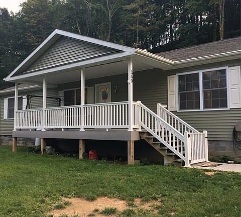 Open Concept with this home and 1.35 Acres for the taking! Updated throughout with built in appliances, wallmount oven and microwave with counter top stove. Kitchen is very spacious with large island and plenty of storage. Enjoy the propane fireplace in livingroom or relax in jetted tub in master bath. Composite Deck on front porch to enjoy morning coffee. Storage building on property stays. Permanent foundation. This is a must see to appreciate and bring all offers!