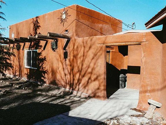 You'll love this ranch-style home with gorgeous stucco exterior and unobstructed city views. Tucked behind a gated entryway, this 2105 Sq ft, 4 bedroom, 2 bathroom home is loaded with charm. Enjoy stargazing off of the sun deck atop the roof, or the views from the open patio with ground level fire pit. The master bedroom presents a beautiful Kiva fireplace, built in shelving, ample closet space, and large master bathroom with garden bathtub. Enjoy the spacious bonus room or cozy up to the wood burning stove