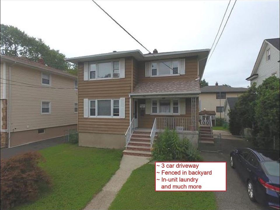 Unit: 1st floor of a two-family home. The house is located on a quiet street. 1st floor comes with a 4-car driveway. Updated 3 bedroom and one bath, large size eat-in kitchen and living-room. Freshly painted all rooms. Hardwood floors. Pets are allowed. Unit includes washer and dryer. Storage space is available in the basement. Shared backyard usage and fenced-in all around. House is located in a desirable neighborhood near all major highways, shopping malls, and a block away from the park.