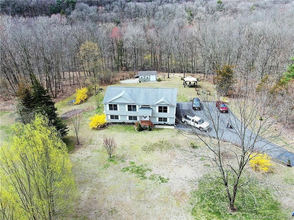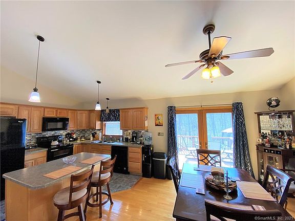 There are many unexpected great things about this home, it may sound too good to be true so you'll have to come see for yourself Over 7 acres of land with direct frontage on the Yantic River. Plenty of room inside and out. 3 bedrooms and a full bath on the main level and a 4th bedroom, full bath and family room with full walk-out in the lower level. Hardwood and tile floors, cathedral ceilings in the living room, built-in book-cases in upper level bedroom, solid wood interior doors, ceiling fans in all rooms, glass tile back-splash and oak cabinets in the kitchen. 3 sources of heat - oil baseboard heat, pellet stove on the main level and mini-split ductless heat pumps for heat and cooling. Wired for generator hook-up. New french doors from the dining area to the back deck and the Klotter Farms shed will stay. City water connected. Thoughtfully landscaped -including blueberry bushes There are some cleared trails through the lightly wooded lot down to the river, the only thing it needs is a hammock