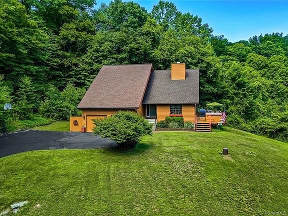 Imagine...sitting on a porch overlooking your large pond sited on 5+ acres on a country lane near Litchfield County line, across the street from designated open space. Couldn't be more serene 3 Bedroom custom contemporary, single owner, never before on the market Vaulted ceilings, 2 sided fireplace and open concept design. Kitchen offers new stainless steel appliances and opens with a breakfast bar to the sunken family room with built ins and wet bar. There are 2 bedrooms on the 1st floor with a full bath. The second floor includes a large loft/bonus room with balcony. Walk through to the private master suite which features a sitting area, and is adjacent to the laundry room, walk in closet, full bath and walk in attic for additional storage. There is a 1st floor powder room and mudroom leading to a side porch. Sliders in the family room, dining room and living room all open out to the large deck, pond views, and hot tub. Beautiful gardens surround the property. CA. Newer roof, furnace, well pump and new hot water heater. Nothing to do but move right in