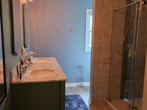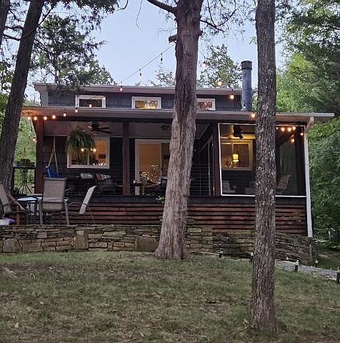 LAKE HOME FOR ALL SEASONS! GREAT LOCATION! Come see this beautifully renovated 2BR +flex room, 3 full bath home with loft (can be used as office or TV room) with 5.5 acres, 18th century beams throughout, good water depth, concrete seawall,boathouse/sundeck/fishing dock, laundry room, pole barn and private road to the house great for hiking. New grand staircase, primary bedroom with new BR and walk in closet, paint throughout, walnut butcher block island top, new GE slate appliances, all new windows including sliders, stain/paint exterior, and so much more. You will love the tiered decking and stone patio, great for entertaining and relaxing. Easy access to 57, spectrum internet and lovely cove with great neighbors. Additional 2BR perk site!