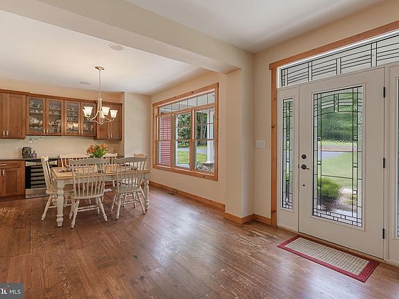 Nestled within the hills of Bechtelsville can be found this four bedroom custom craftsman cape with geothermal heat and fully finished basement. From upon entering, the home exudes warmth, with wide-plank Southern pine floors that carry through the first and second levels, wood trim, and nine foot ceilings on main floor. French doors lead to the study, presently a music room, and dining room sets opposite of, with plentiful windows, surround-sound (which is also in kitchen, sunroom, family room, and owner's suite), and built-in cabinetry with wine fridge, quartz top. The same Kraftmaid soft-close cabinets carry into bright, welcoming kitchen. Expansive island with seating, farmhouse sink, stainless steel appliances, wall speed-cook convection/microwave are just a few of the highlights of the kitchen, which is open to the sunroom as well as family room with stone floor to ceiling wood-burning fireplace with blower. Opposite side of house has laundry room, office with built-ins, and access to two-car garage with extra storage area. Appreciate the natural surroundings from the screened porch and deck, accessed from sunroom. Turned stairs lead to the second floor where three spacious bedrooms can be found along with tiled hall bath with radiant heat and vanity area separated by pocket door. Double-door entry to the Owner's suite with vaulted ceiling, spacious walk-in closet, and luxurious bath with radiant-heat tile floor as well, tile-surround shower with frameless glass, Jacuzzi tub, and water closet complete the second level. More than 1,300 additional sq ft of living space can be found in the daylight walk-out basement with full-size windows and eight foot ceilings. Plentiful storage space, utility room that houses the tankless hot water heater, geothermal system, Manifold with PEX system, and softener and PH neutralizer for water. Foundation walls are precast, not poured on-site, and basement is also plumbed for full-bath. Additional amenities needed mentioning: solid wood doors and Anderson double-hung windows throughout, Central Vac, Kriebel security system, sub-panel for generator, and foam blown-in insulation added to the entire shell of house during construction. Such a beautiful custom home tucked within an idyllic setting, and easy access to Lehigh Valley and Phila/Main Line areas!
