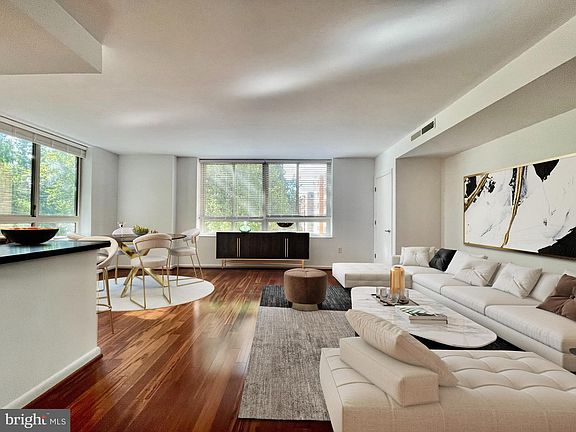 Ideally located 2BR/2B south-facing condo featuring a spacious open floor plan, wood floors throughout, expansive corner windows, large bedrooms with ensuite baths, an open kitchen with stainless steel appliances and breakfast bar, walk-in closet, washer/dryer. Secure garage parking space makes parking easy and a private storage locker provides additional storage space. Potomac Place Condominiums offers residents full-service amenities including 24hr concierge, two fitness centers, an entertainment lounge, and an outdoor pool with a sundeck. Rest easy knowing the kitchen appliances, washer/dryer, and HVAC were all replaced in 2020. Easy city living with two blocks to Safeway and the Metro, four blocks to The Wharf, and seven blocks to the Nats Park and Navy Yard. Shopping, dining, sports, and entertainment at your doorstep.