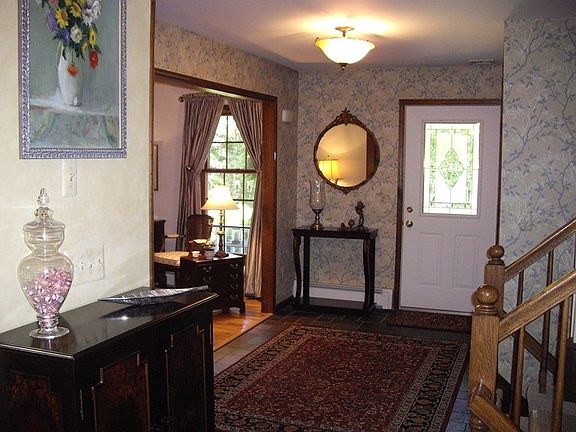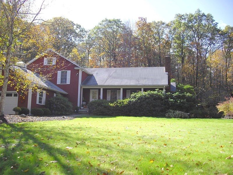 This 16.9 acre property provides an "oasis" after a long day. A warm, inviting home that is close to major highways, shopping & more but still provides total privacy. The interiorof this home is perfect for entertaining. There is an easy flow throughout - a Lg. formal LR w/1of 2 woodburning FPs, an XLG formal DR w/ bay window, a custom eat-in kitchen w/ center island, SS appliances, vaulted ceiling & garden window. The FR w/wet bar & stunning fieldstone FP wall opens through sliders to patios & gardens surrounded by moss covered stone walls. 4 good sized BRs & 3 full BAs provide plenty of space. A finished basement adds extra living and storage space. 4 bay pole barn, garden shed, new septic field (9/2014) and more. Must see to appreciate! House is set back far from the road.
