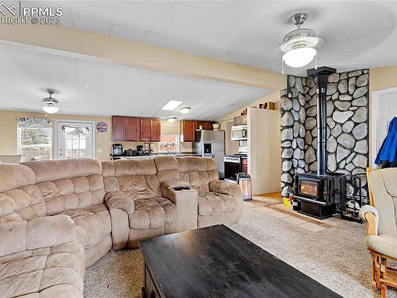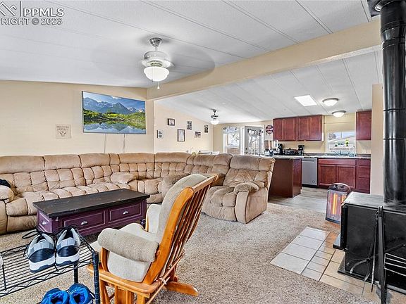 Welcome to this 4 bed, 2 bath home with a detached 2 car garage. The home features an open concept living, dining and kitchen. The large living room boasts a gas stove and vaulted ceilings. The kitchen is open and bright with SS appliances as well as lots of cabinet and counter space as well as a large island. The dining room walks out to fully fenced back yard. Just off the kitchen is the laundry room with storage closet and cabinets. The spacious master bedroom features vaulted ceilings, attached 4 piece bath and walk in closet. There are 3 additional bedrooms and a shared full bath. The home sits on a large corner lot with plenty of room for all your toys. Located in the heart of Calhan with easy access to Hwy 24. Just a quick commute to Falcon and Colorado Springs.
