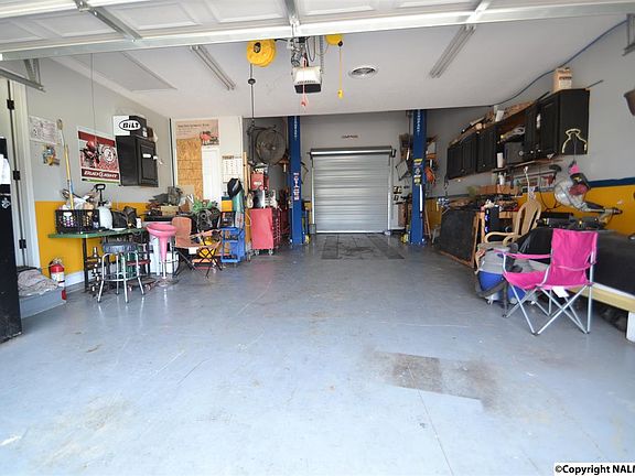 Perhaps the most important room in the house... THE GARAGE! Heated with gas heat and fully insulated walls and ceilings. Front part of the garage is a typical 2 car 21x21. The back part of the garage is another approx 20x20 with a extra high 13 feet ceiling. Purchaser can buy the BendPak lift separately. Three bedroom 2 bath home has handscraped plank hardwood floors, large living room, maplewood cabinets in kitchen, recessed lighting throughout house, large covered back porch overlooking privacy fenced back yard. Buy this well appointed home just outside the city limits of Albertville for only $139,000.