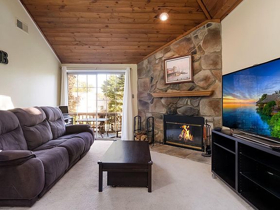 Welcome home to care-free living in this  2 bedroom second floor condo! Backing togreen space provides a tranquil setting. Enter the home to see the open family room with vaulted ship-lap ceilings and a cozy wood burning fireplace. The kitchen has been updated with shaker style cabinets, travertine backsplash and granite countertops. Two generous sized bedrooms and a shared bath complete this home. HVAC is only 2 years old. Close to commuting and shopping this home is a must see!