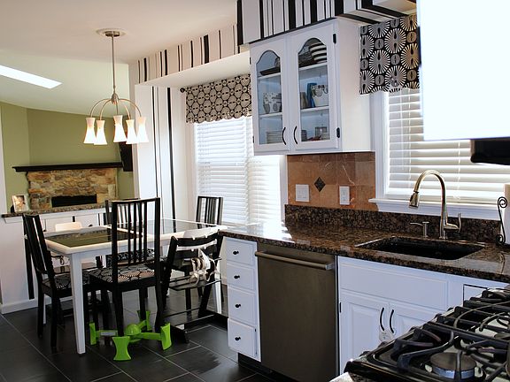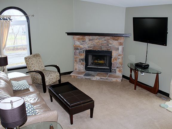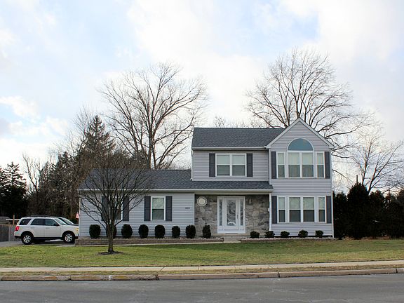 This LIKE NEW Colonial has stone wall landscaping and custom cut glass front door to welcome you. ITALIAN PORCELAIN tiling grace the foyer, hallway and all through the kitchen. The open living room (being used as a home office) has a full wall of windows allowing in streams of light. Dark BAMBOO FLOORING continues through to the dining room (being used as a playroom) with a mirrored wall. The EAT-IN kitchen features newer stainless steel appliances and GRANITE counters with tiled back-splash. Step down into the family room with cathedral ceiling and stone FIREPLACE. The master bedroom suite boasts a vaulted trey ceiling, walk-in closet and full bath with JACUZZI tub and skylight. The entire house has been repainted. There are newer WINDOWS, FRONT DOOR, and SLIDER, NEW ROOF (2015) with transferrable warranty, all new moldings, doors, fixtures and 2012 FURNACE. The attached 2 car garage has plenty of storage, along with the floored attic and dry basement. The 1/2 acre treed lot with SPRINKLER system features custom shed, wood deck, basketball court, and quoit pits; plus CLEAR CofO, too.