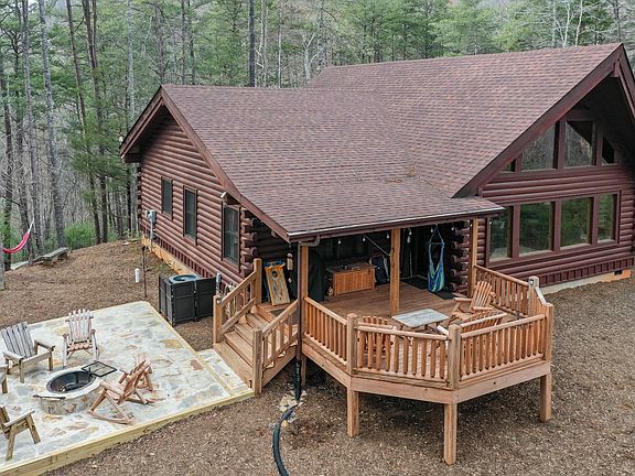 LAKE LURE NC---This custom built, 3 bedroom, 2 bath, log home located in Riverbend at Lake Lure has plenty of activities to enjoy, including 2 private lakes, waterfalls, hiking trails, sandy beach, great fishing, swimming and boating! This home offers a wide open floor plan with 19' ceilings, massive stone fireplace, hardwood floors along with plenty of covered outdoor space, including multiple porches and stone patio with firepit. Current owners have high speed internet, making it easy for working from home. Come and visit beautiful Western North Carolina and buy your custom log cabin. Offered at $619,500.
