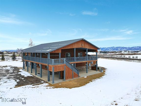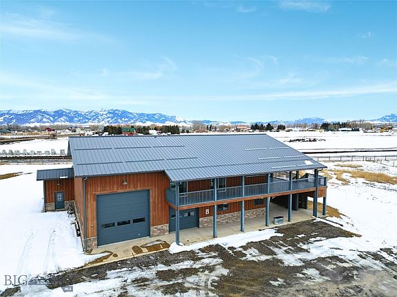 Dream Barndominium on 4 acres with room to build your Dream Home. Located about 5 minutes to Belgrade and less than 15 minutes to Bozeman, this custom built barndominium has a large 1700 sf 2 bedroom 2 bath apartment on the upper level and over 4000 sf of garage, shop, and office space on the main level. The apartment includes circle sawn hardwood floors, vaulted ceilings, a chefs kitchen and over 1000 sf of covered decks. The main level has a 14 foot garage door, radiant slab heat, and multiple spaces for offices, a work shop and/or general storage.