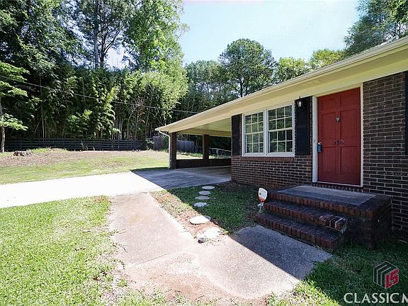 Presenting a prime investment opportunity or a perfect candidate for your next renovation project. This all-brick ranch offers unparalleled convenience to Atlanta Hwy. and Loop 10, just adding to its desirability. Its thoughtfully designed floor plan promotes easy living, seamlessly blending inviting and comfortable spaces. The spacious living room, bathed in natural light from a double window, welcomes you upon entry. This space flows effortlessly into an oversized secondary living area, ideal for large gatherings. This pine-paneled room features a central masonry fireplace, a coat closet, French door access to the rear yard, and opens directly to the kitchen, making it ideal for entertaining. The galley-style kitchen is well-equipped with ample counter space, stained wood cabinets, and essential appliances. Flanking the kitchen is a versatile formal dining room that could also serve as a mudroom, "drop-off" location, or home office due to its convenient carport access. This space extends to a large laundry room with shelving, which also provides access to the carport. Down the right hallway are three cozy bedrooms and two full baths, offering peaceful retreats for rest and relaxation. Each bedroom offers carpet flooring, multiple windows, and ample closet space. The owner’s suite includes its own private full bath. Enjoy outdoor living on the patio overlooking the fenced rear yard, perfect for BBQs and soaking up a little sun. Additionally, the 2-car carport can also double as a covered patio if desired. This total package is found enveloped on a .47 acre lot, rich with manicured lawns and mature shade trees. With its convenient in-town location, sturdy bones and inviting plan, this fantastic property is the epitome of the ideal investment opportunity you’ve been waiting for.