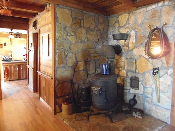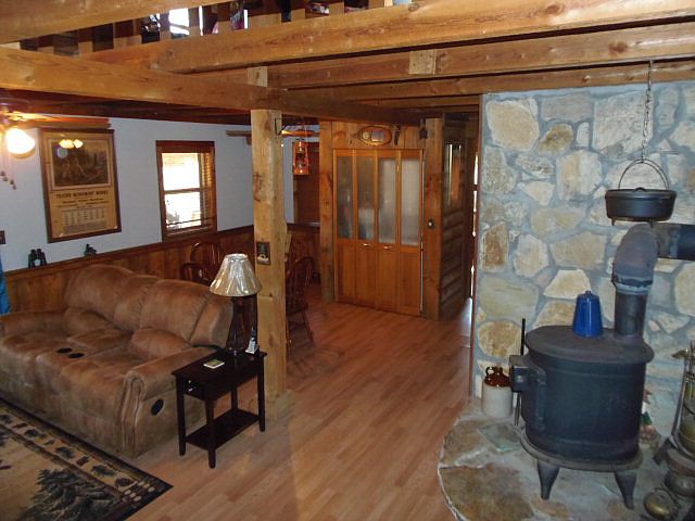 RUSTIC ONE-OF-KIND CABIN ON 3.69 UNRESTRICTED ACRES...This 2/2 cabin has rustic charm throughout. When you enter the cabin you will immediately notice the wood burning stove sitting on a custom rock wall and vaulted ceilings. One of the 2 full bathrooms has a unique tub that screams bubble bath time. The kitchen has an warm country charm with another wood burning stove. The great room is perfect for entertaining & the pool table and bar remain. The bedroom suites are located upstairs on opposite ends of the cabin with a custom walkway. Covered deck has a hot tub looking out to mountain views. 25x33 two car garage with bar, outbuilding, picnic area...MUST SEE