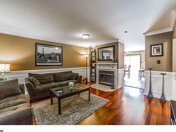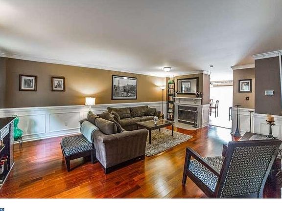 Don't miss out on this beautifully maintained townhome in the very popular Rittenhouse Square community, located in the heart of charming Trappe Borough. You will be impressed the minute you enter the living room / great room, that offers gorgeous Brazilian cherry hardwood floors, upgraded wood trim, including chair rail & wainscoting, along with a wood burning fireplace. The living room leads into the kitchen, complete with ceramic tile floors, oversized center island, stainless steel appliances and wonderful dining room / country kitchen area. The kitchen has sliding doors to the brand new deck (2015) with steps to a lower patio and the wonderful setting backing to trees / open space. The 2nd floor offers three bedrooms , an updated hall bath and pull down steps to a floored attic. The spacious & tasteful master suite offers double closets and a full master bath. You will love the finished walkout basement that includes the family room area, great for watching the big screen TV and entertaining. The basement also includes a separate laundry area and full storage room. This home is conveniently located ten minutes from the popular Providence Town Center[ great shopping, dining & Movie Tavern] and only twenty minutes from King of Prussia. Recent updates to this home include Windows(2013), appliances & hardwood floors(2011), deck(2015)