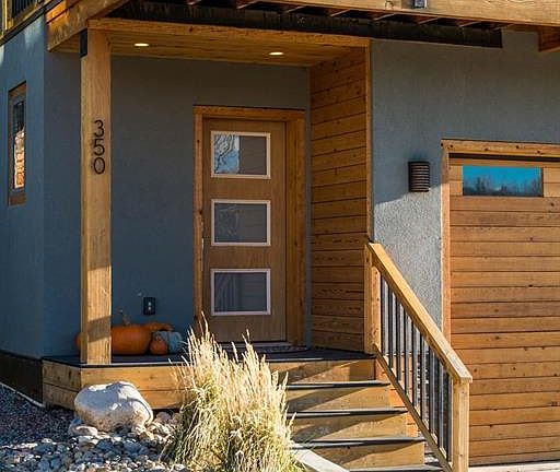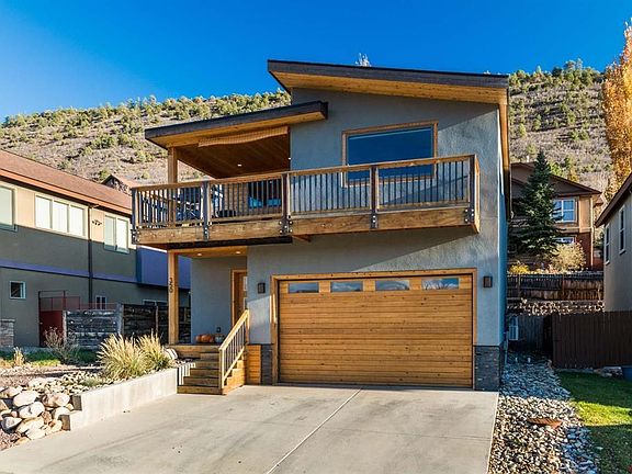 Located in the convenient and desirable Sky Ridge Subdivision, this detached home is set back from Jenkins Ranch Road on a private drive with 7 other homes. Built in 2017, this 3 bedroom, 2.5 bathroom home offers a functional and versatile floor plan. The Douglas fir timber staircase welcomes you into this tastefully designed home leading you upstairs to the living room and dining room with matching wood floors. The kitchen boasts walnut cabinetry, eco-friendly Paperstone counters, GE appliances including an induction cooktop range, and ample open shelving. The large picture window presents expansive views of the La Plata Mountains from the kitchen, living room, and dining room with the option to dine al fresco on the covered balcony and large deck. The spacious primary suite is located on the upper level accented by built-in shelving and plenty of room for a home office. Pass through the large closet to the primary bathroom featuring a curbless shower with custom tile. Two additional bedrooms are located downstairs as well as a full bathroom with a custom vanity and solid stone counter. Increased insulation with double wall construction and triple pane windows. Mini-split systems provide heating and cooling throughout the home as well as baseboard electric heating in the downstairs bedrooms to keep them cozy this winter. There is a high efficiency HRV system to provide circulated air to this well-sealed home. Featuring a 7 kW PV solar system with an LPEA net-metering program combined with the efficient construction can allow the occupants to choose to live at “net zero" under the right circumstances. Enjoy all that Sky Ridge has to offer with easy access to the hiking and biking trails of Horse Gulch and Raiders Ridge, as well as Jenkins Ranch Park including tennis courts, playground equipment, and a large grassy area.