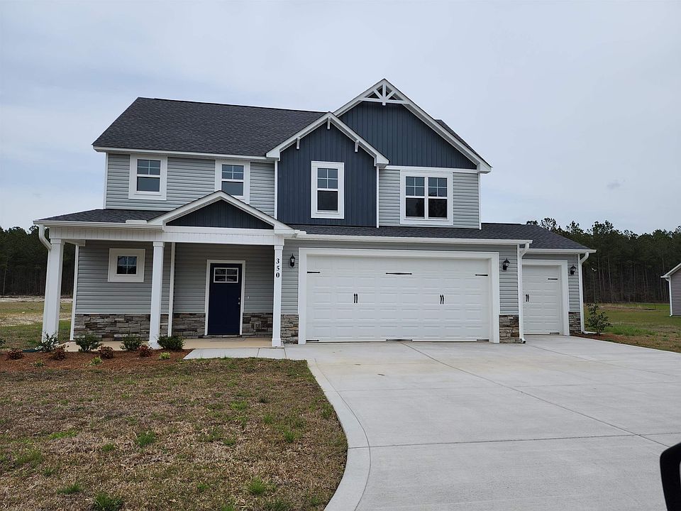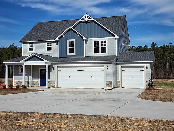 Free Refrigerator!! 3 car garage, 3 bedrooms and 2.5 bath 2 story on approx. 2 acre lot!!! Convenient to Sanford, Fayetteville and Fuquay Varina. Open floor plan with kitchen island, granite counter tops, SS appliances, pantry and lots of cabinets. Owner's suite with large walk in closet, double vanity in bathroom with a convenient washer/dryer area upstairs. Lots of closet space in this new construction home! Make this spacious new home yours for 2023!! Enjoy this large lot in a convenient area of Harnett County.