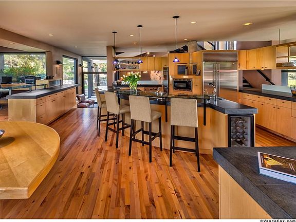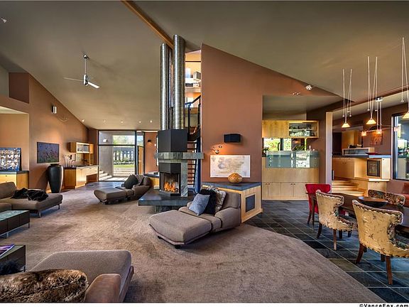 Down a long driveway, around curved berms showcasing alpine natives, Juniper Hill slowly unfolds. Surprising shapes tease you, arousing curiosity. Mere hints of what lies beyond. Pulling into the guest parking area, you are welcomed by the soothing sounds of an aqueduct flowing atop the courtyard wall, spilling into a perfect circular pool. A pathway leads you gently around this stunning feature toward a welcoming front door. Inside, natural materials mix easily with subtle splashes of high tech sparkle. Large, open entertaining areas, private bedroom wings, architectural ceilings, a floating staircase, walls of glass, and everywhere you look, access to the outdoor terraces. All six of them. In this home you will feel connected to nature. Designed with passive solar features, the structure welcomes the warm sun of winter and protects from the harsh sun of summer. A natural choice for someone who loves to entertain. Wonderful for those who insist on privacy. Perfect for people who demand absolute quality. Designed by David Chavez & Angela Bigotti of AD Architecture. Handcrafted by Bigotti Brothers Construction. One of a kind.
