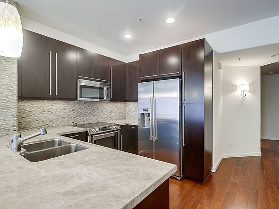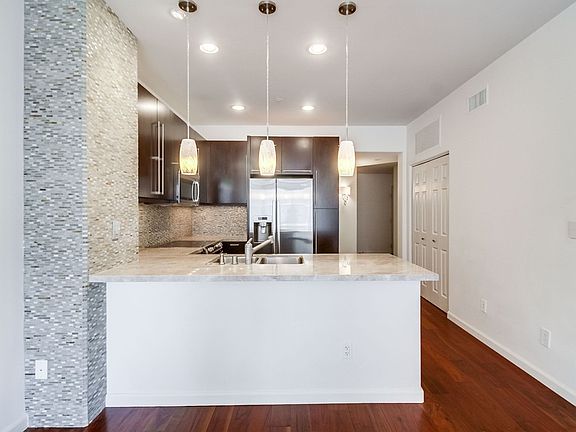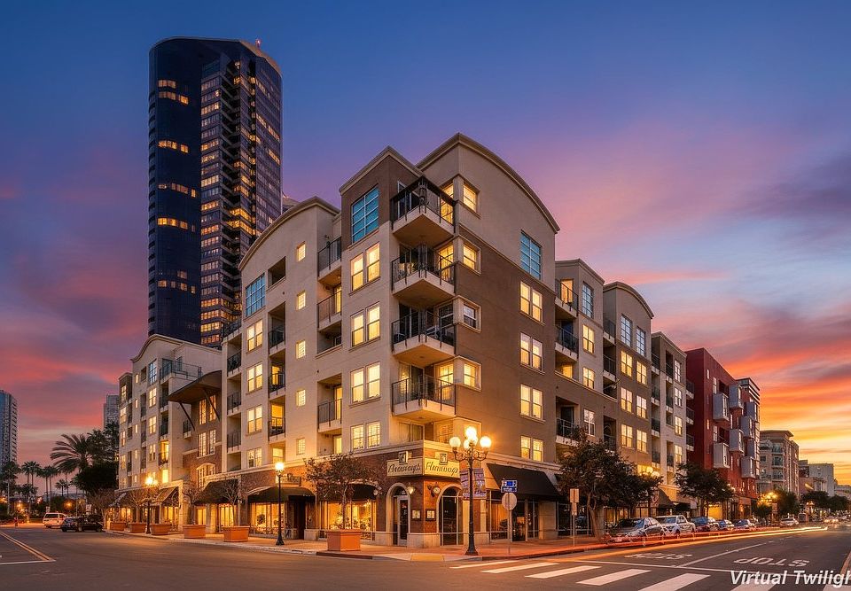 Experience urban living at its finest in this east-facing 5th-floor residence at Crown Bay, one of Downtown San Diego's most desirable communities. The unit offers 2-bedrooms, 2-baths with a private balcony and stunning views. The thoughtfully renovated interior features upgraded wood flooring, stainless steel appliances, elegant stone backsplashes, beautiful lighting, built-ins, and stylish tile finishes. The spacious floor plan offers a well-designed kitchen with ample cabinetry and countertops - perfect for cooking and entertaining. The primary bedroom suite provides a relaxing retreat with designer window treatments, a fully outfitted walk-in closet, dual vanity, and step-in shower. The unit also has its own washer and dryer. Crown Bay residents enjoy premium amenities including a fitness center, beautifully landscaped courtyard, and rooftop BBQ area. It is conveniently located close to the best dining, shopping, entertainment that San Diego has to offer, as well as the Ball Park, Seaport Village and easy access to the San Diego trolley.