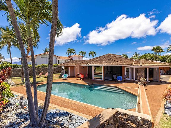 350 Kainoe Street is a completely single-level home with absolutely no steps in one of Maui's most remarkable neighborhoods, Kaanapali Hillside. This 3-bedroom plus den home features ample living space and an open floor plan with a total of 2,492 sqft. Updates include granite countertops and kitchen island, new sliding glass doors, and updated bathrooms. Enjoy outdoor living with ocean and island views, a large backyard with no homes directly behind it, and swimming pool surrounded by lush tropical greens that offer privacy with a tropical setting. Kaanapali Hillside is a golf cart friendly neighborhood overlooking Whaler's Village and world-famous Kaanapali Beach. Take a pleasant golf cart ride from your new Kaanapali home and within minutes your feet are in the sand. This is one of the best values in all of Kaanapali, being offered at approximately $800 per square foot.