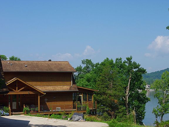 ENJOY THE PRIVACY OF YOUR OWN ISLAND - WITH THE ADVANTAGE OF LIVING AT THE END OF THE ROAD ON BLUEBELL POINT - SURROUNDED BY DEEP / BIG WATER VIEWS - private & gated WITHOUT THE HOA's. It's like owning 100's of acres without the taxes. 350 Kirkham Drive, Rockwood TN, LAKEFRONT End of Road on Blue Bell Point, one of the most desirable homes & best location on Watts Bar Lake. This home features 3 bedrooms, an office or additional guest bedroom, Large Bonus Room, plus 5 baths. A total area (heated / cooled) of 3,944 square feet plus 1,040 square foot garage-workshop & finished 600 SqFt attic on separate electric meter (one of the bath rooms is in garage) all located on 1.26 acres. A wooden walkway leads to the covered boat dock and boat lift. More than 2,200 square feet of decking completely surrounding the home provides more additional living area. In addition, this home features 689 foot frontage on year-round deep water. You must see this house, own your own secluded point in the best area of Watts Bar Lake. Water views from "every" window, no neighbors on 3 sides (only water), fenced with electric gate & beautiful river stone pillars. This section of Watts Bar Lake "Blue Bell Point" is known for fine homes, exceptional fishing, boating, skiing, and sailing. The deep water around Blue Bell Point provides year-round access to all of Watts Bar Lake. The 1.26 acre lot is located on a private cul-de-sac. This Cedar, tri-level home, built in 2003, features one-of-a-kind Quartzite kitchen counter tops with custom-made quarter sawn sycamore cabinets and stainless steel dishwasher, disposal, refrigerator, stove and oven. There is a sound system throughout the interior and exterior, solid oak doors, oak floors and spruce ceilings. The other rooms include: living room, dining room, kitchen, and game room. Most impressive is the 2,200+ square feet of decking with custom copper railings. The exceptional 1,040 square foot 2-3 car garage/workshop with wood burning stove plus 2 carports (16 x 26 & 16 x 28), & 600 SqFt finished attic make this the one. What I love about the homeLAKEFRONT VIEWS, DEEP WATER, GATED, FENCED, END OF ROAD ON A POINT, NO NEIGHBORS ON 3 SIDES - ONLY WATER !!! 270 DEG WATER VIEWS. BETTER THAN YOUR OWN ISLAND.