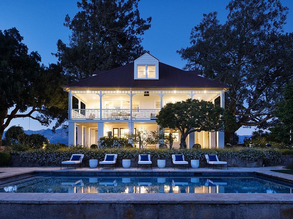 Best described as a perfectly sized, gated Wine Country compound on a manageable 9+/- acres in Calistoga. Equally suitable for entertaining large families and groups or enjoyed by just a couple. Anchored by a fully modernized 3+br/4.5ba farmhouse w/ wraparound porches overlooking large stone-wrapped pool w/ lounging & relaxation areas, beautiful gardens, and the Kendall-Jackson vineyards beyond. In close proximity to the main home is a 3br/2ba ranch-style guest cottage, a delightful party/ entertaining barn, and a treehouse w/ queen bed & outdoor bath, all of which have commanding views of Calistoga, the Palisades, and Mount St. Helena. This property is like no other: it exudes true Wine Country character and charm, it is modern with authentic farmhouse elements, and it emanates a truly tranquil aesthetic. Radiant heated floors, marble and stone baths, custom lighting fixtures, and updated and efficient infrastructure. The property is virtually self-sustaining with ample water from both city and private sources, solar panels, generator, and so much more. Together, the property's structures provide 7+br/7.5 ba and the main residence offers new owners flexibility to configure its spaces to myriad personal living styles. This is truly a one-of-a-kind property in Napa Valley.
