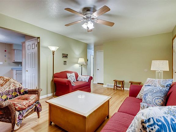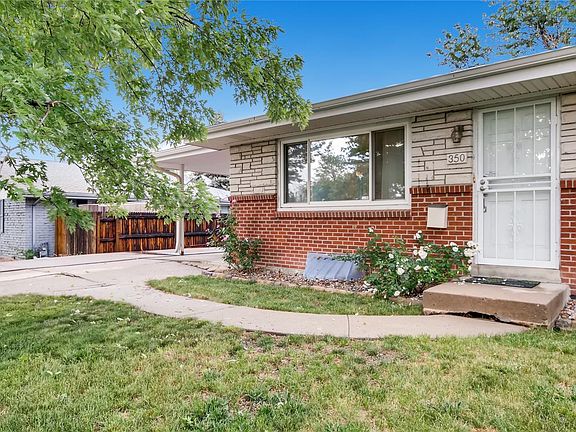 Light-filled, welcoming home. Large, fenced backyard with two beautiful, mature shade trees and garden area. 3 bedrooms upstairs and 1 non-conforming bedroom downstairs with walk-in closet. One main floor bedroom has private entrance. Finished basement with large family room, updated bathroom and three storage areas. Updated electrical panel and all outlets updated throughout home. Newer main plumbing stack. House has A/C plus whole house attic fan. Covered carport parking plus additional driveway space for RV or boat parking. Great location near Anschutz Medical Campus, Lowry eateries and parks and Stanley Marketplace. Short drive to highways. Seller requests up to 60 days Post-Closing Occupancy Agreement to find a new home.