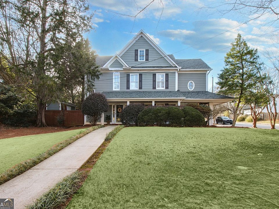 Nestled in the heart of City of Decatur's esteemed Sycamore Ridge neighborhood, this beautifully updated two-story traditional home offers an exceptional blend of timeless elegance and modern luxury. Located in a top-ranked school district, this meticulously maintained residence boasts thoughtful upgrades, sophisticated finishes, and an enchanting outdoor retreat. Upon entering the home from its welcoming foyer or inviting covered patio, the light-filled kitchen with an adjacent keeping area features a Viking oven, newer stainless appliances, a wine cooler, and a dry bar. The main level offers an open living and dining concept with a custom Artistic Artisans limestone hearth fireplace, hardwood floors, and a private half bath. Upstairs, the primary suite is a retreat-like sanctuary, with a spa-inspired bath that includes new vanities, designer lighting, a separate soaking tub, a walk-in shower, and dual walk-in closets. A shared Jack and Jill bath serves two additional spacious bedrooms. Freshly painted interior and exterior, the home showcases exceptional craftsmanship, complemented by a newer roof of the primary home and detached garage. The detached two-car garage features insulated garage doors and serves as a professional art studio with walk-in storage areas and track lighting. Above, a private guest apartment with a full bath and walk-in closets offers endless options for family, guests, or separate office needs. Step outside into a resort-style oasis where a saltwater pool with waterfall jacuzzi, a covered outdoor kitchen with dual built-in Green Eggs and gas grill, and a separate terrace level with a fire pit invite year-round enjoyment. Meticulously designed by the late renowned Ryan Gainey, the lush gardens provide a picturesque setting for this exquisite home. With newer systems and a water heater, this Sycamore Ridge masterpiece offers the best blend of comfort and convenience.