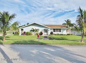 Beautifully updated three bedroom two bath concrete block home on corner lot in Jamaica Shores of south Satellite Beach! Features include bamboo wood flooring throughout, newly remodeled guest bath, open floor plan, vaulted ceilings, skylights, ceiling fans throughout, attached two car garage, freshly landscaped and more! Eat-in kitchen offers matching stainless appliances, breakfast bar, recessed lighting and plenty of cabinet storage. Master suite showcases built-in entertainment center with storage, walk-in closet and tiled shower. The large enclosed back patio adds plenty of additional entertaining space. Bike to the beach or sunbathe in the privacy fenced backyard with storage shed. Rent includes lawn care and washer and dryer!