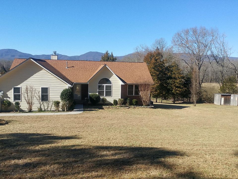 Gorgeous private serene setting overlooking pasture and mountain views. Open eat in kitchen with new granite countertops, tile floors, pantry, dry bar, and includes all appliances. Great room has cathedral ceilings, new premium vinyl laminate flooring, and gas logs in the fireplace. All bedrooms display new premium vinyl laminate flooring and ceiling fans. Hall bath has new tile, new vanity with granite top, and fixtures with full tub shower.