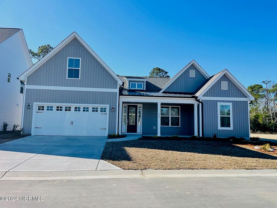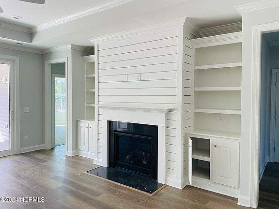 Welcome to the popular Otter homeplan, a creation by American Homesmith in The Sanctuary at Forest Sound. Step inside this open-concept gem that radiates with a well-lit and spacious kitchen featuring a generous center island, ideal for hosting gatherings. Revel in the elegance of quartz countertops, a tasteful tile backsplash, a natural gas range, a capacious walk-in pantry, and a cozy breakfast nook. The family room beckons with a shiplap-adorned fireplace, complete with natural gas logs, and seamlessly connects to the expansive covered porch through telescopic sliding doors. Your private retreat awaits in the master suite, tucked away at the back of the home, where you'll discover a trey ceiling, a charming barn door leading to the master bath, and a bathroom boasting two separate vanities, a secluded water closet, a fully tiled walk-in shower, and a large walk-in closet. The first floor also hosts two additional guest bedrooms with a full bath, a convenient laundry room, and a mudroom situated off the garage. For added versatility, the second-floor bonus room offers an ideal space for guests or teenagers and comes complete with a private full bathroom featuring a walk-in shower. This home is designed to include a tankless water heater and a meticulously landscaped and irrigated yard. The Sanctuary at Forest Sound is strategically located in the heart of Hampstead, offering easy access to Wilmington, Surf City/Topsail (just a 15-minute drive), and a mere mile from the Intracoastal Waterway. The community's future plans include a proposed boat storage area, making it a haven for water enthusiasts. Welcome to your new home in The Sanctuary at Forest Sound.