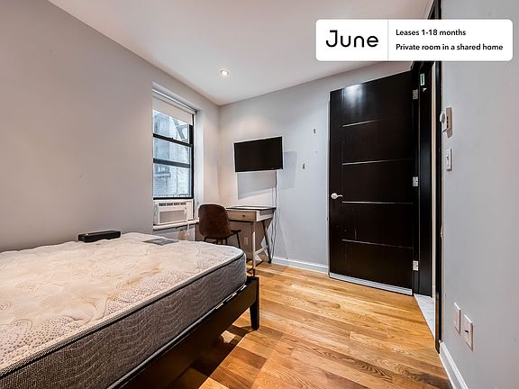 This Full room in Central Harlem is available on a 12 month lease or a flexible short term (31 to 364 days) lease. You pick your custom start and end date. Monthly rent rate is determined by furnishing preference, move-in date and move-out date. Speak to a June representative for recommendations on the best stay duration for the lowest rate.