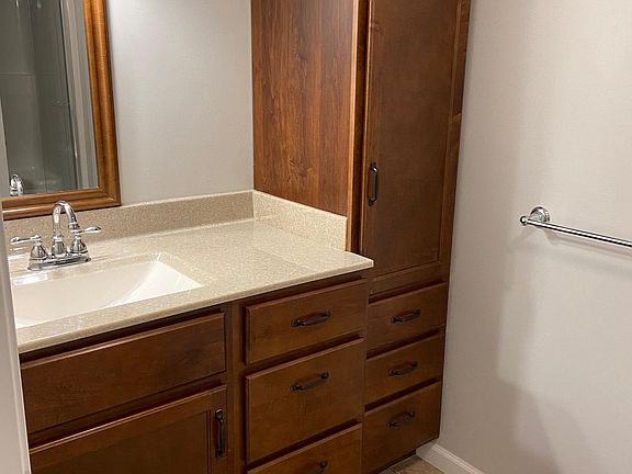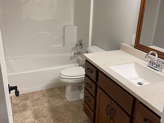 Ranch style all on one floor two bedrooms two bath condo. This is on a low traffic dead end street close to grocery store and post office. This is a new unit with great amenities including connected garage, concrete patio, central A/C and natural gas furnace. Washer and dryer hook ups. One year lease with full background check. No pets allowed.